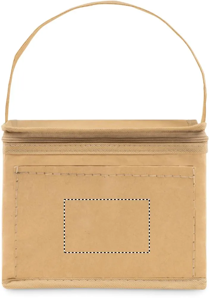 Saco térmico em tecido de papel reciclado para 6 latas. Tem uma pega e um bolso frontal. Material de isolamento: Camada de espuma PE. Capacidade 3L.Geladeira em paper woven
