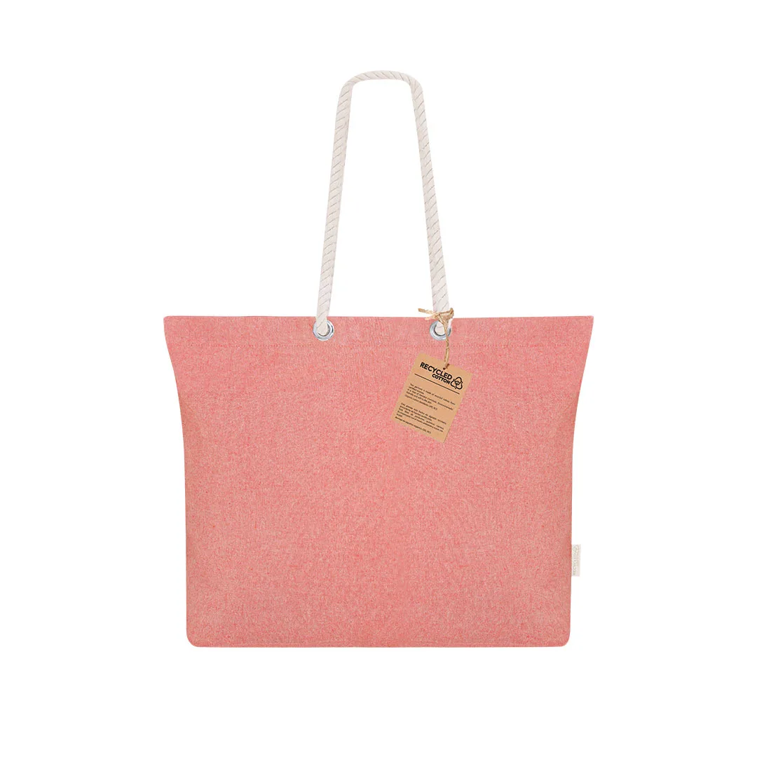 Bolsa confeccionada principalmente em Algodão Reciclado de 220g/m². Com bolso e alças longas de algodão na cor natural e design trançado. Inclui distintivo algodão reciclado.Algodão Reciclado 220 g/ m2