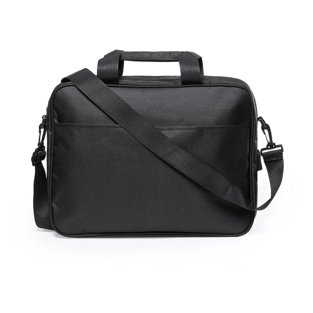 Pasta porta-documentos original de revestimento em poliester 600D resistente em preto e fecho de correr. Com saída de auscultadores e compartimento interno com saída USB para ligação de PowerBank-não incluído-. Com punhos reforçados resistentes e acessório traseiro para transporte na barra do trolley. Interior com compartimento acolchoado para portátil até 15 polegadas e o compartimento para tablet até 10 polegadas. Diversos bolsos interiores e exteriores e alça de ombro ajustável com mosquetão.Poliéster 600DConexão USB. Bolso Acolchoado para Portátil e Tablet