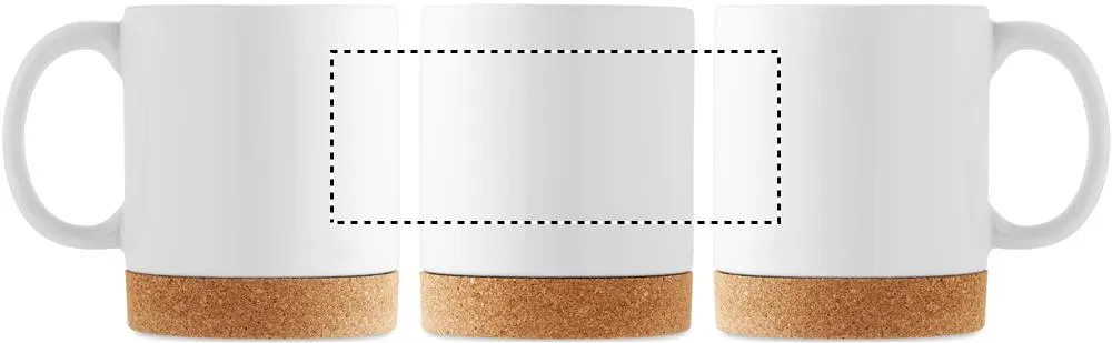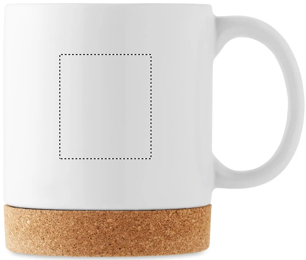 Caneca de cerâmica com revestimento especial para impressão por sublimação e detalhe na base de cortiça. Capacidade: 280 ml. A cortiça é um material natural, devido à sua natureza estrutural e porosidade da superfície, o resultado final da impressão por item pode ter desvios.Caneca com cortiça sublimação