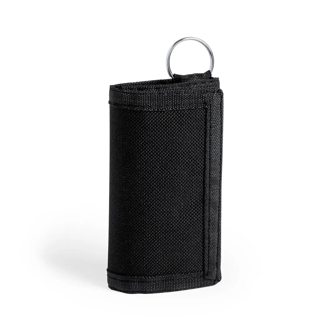 Bolsa de chaveiro no poliéster resistente 600D com tons brilhantes e fechamento de velcro. No interior com carteira com zíper, compartimento de cartão e chaveiro.Poliéster 600D