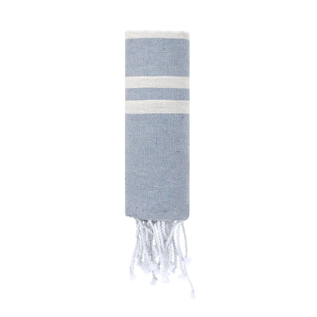 Suave pareo-toalha de 150g/m² em combinação de algodão e poliéster. Seu design conta com uma base colorida e listras brancas. Inclui fios nas extremidades que adicionam um detalhe decorativo e complementam seu acabamento.80% Algodão/ 20% Poliéster 150 g/ m2