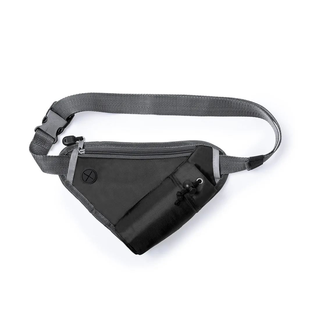 Ref: BEC2055MOPack Fanny com design triangular em poliéster 210D macio em várias cores. Projetado para atividades esportivas e de lazer. Com bolso de fecho com fecho de correr, saída para auscultadores, bolso de garrafa ajustável e cintura com fecho de clique ajustável. -Garrafa não incluída-