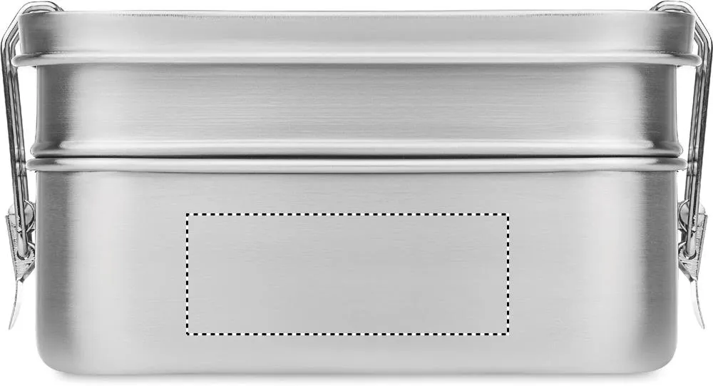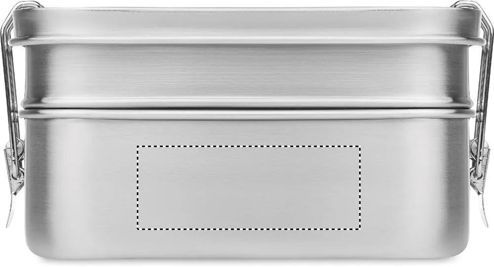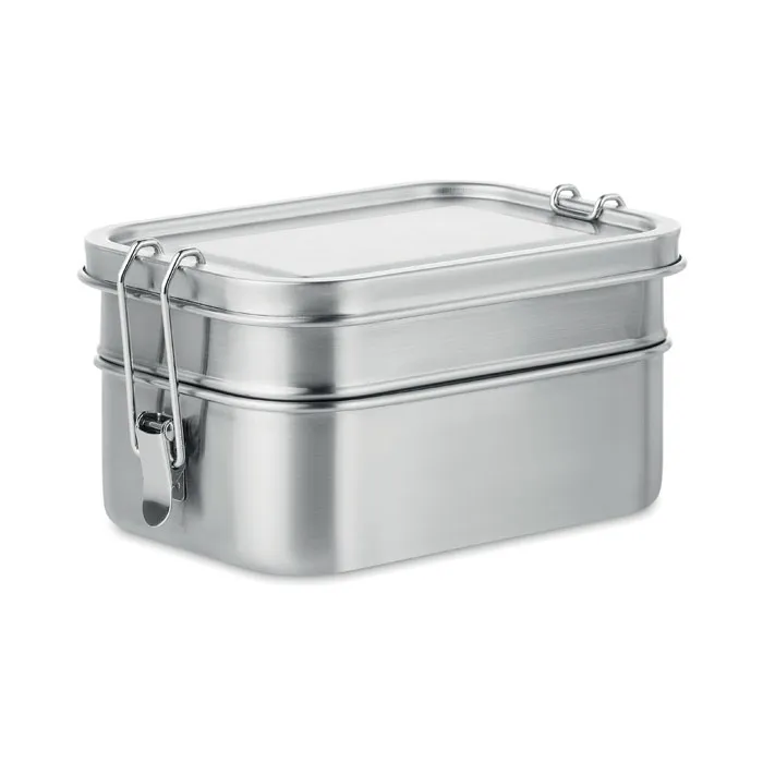 Lancheira em aço inoxidável com 2 compartimentos com fivelas laterais fortes e seguras. 1200 ml de capacidade.Lancheira em aço inoxidável