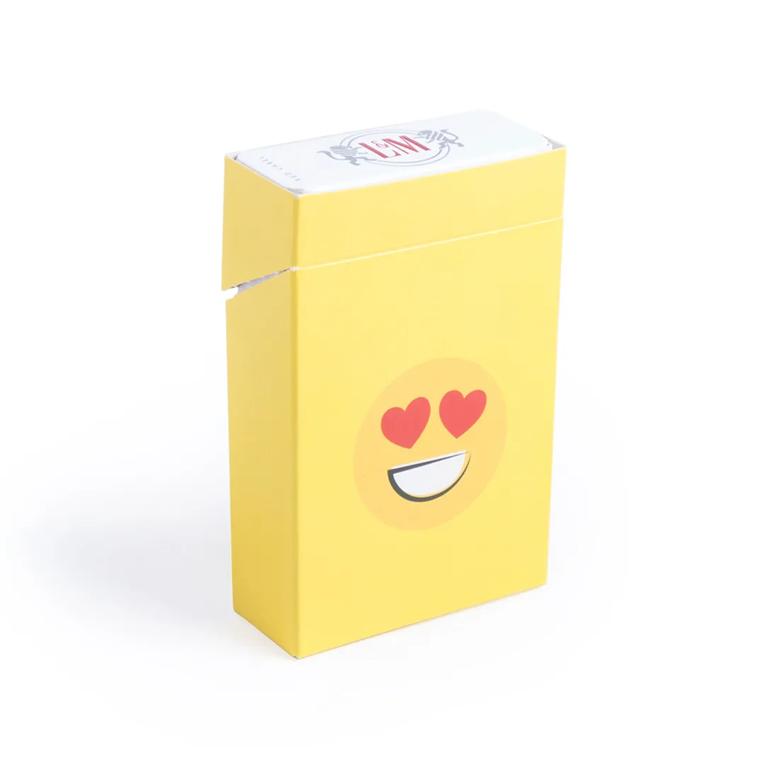 Ref: BEC2145MOCaixa da caixa de cigarros em desenhos de emoji divertidos. Na cor amarela atraente. Papelão brilhante com emoji nas costas e apresentação dobrada.