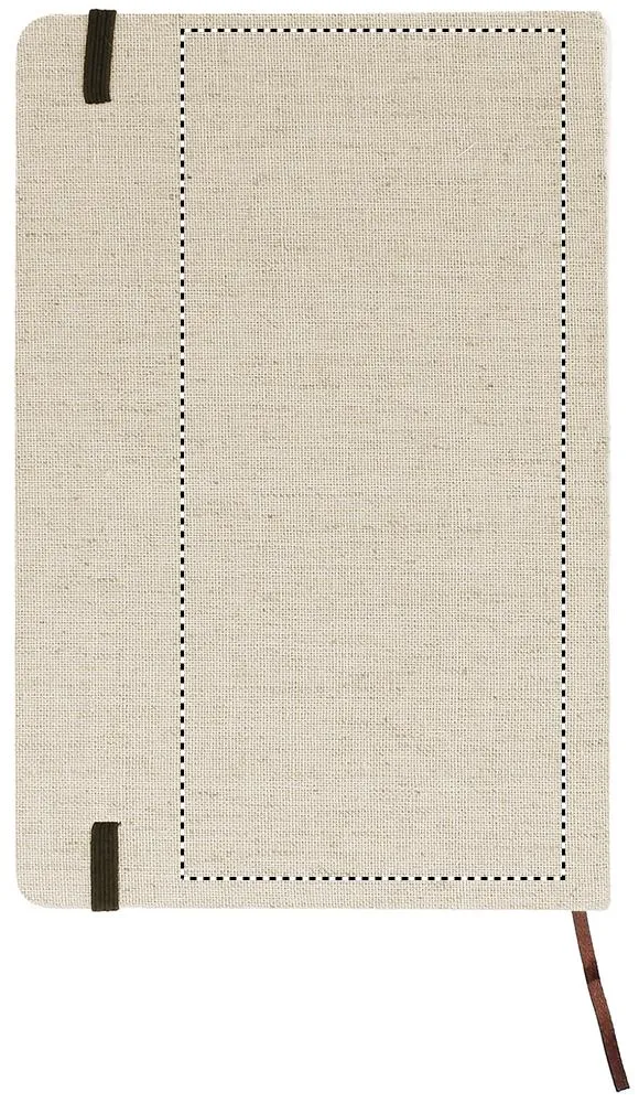 Bloco de notas A5 com capa de lona dura. Encadernado. 192 páginas pautadas em papel reciclado (96 folhas). Alça de fecho elástica em contraste e marcador de páginas em fita.Bloco A5 de canvas