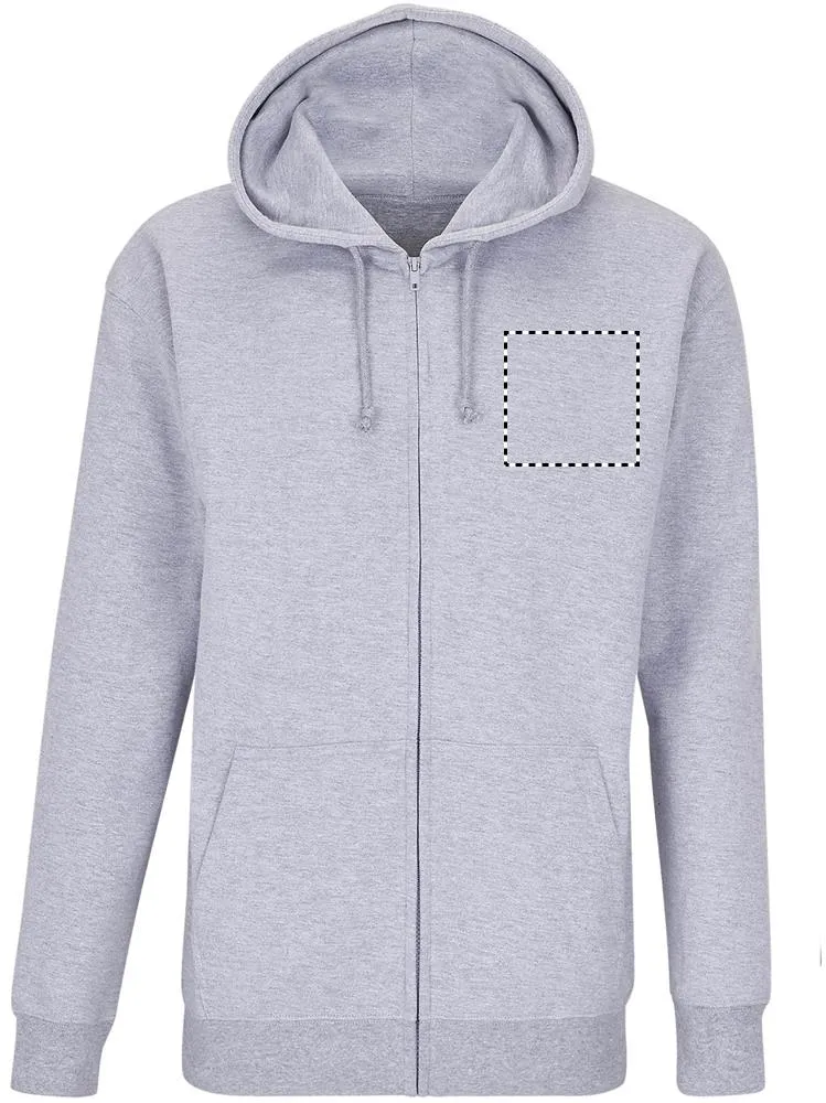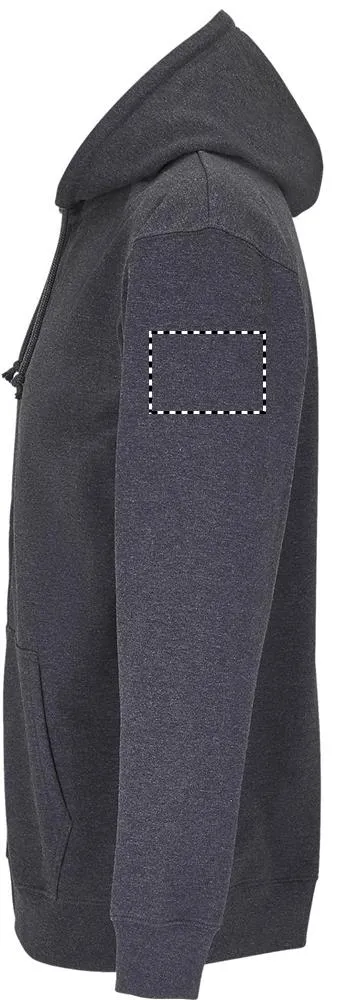 SOL'S CARTER, UNISSEXO, Sweat com capuz 80% algodão - 20% poliéster reciclado certificado Grs Mangas com encaixe, cortadas e cosidas, punhos e parte inferior canelados 1X1, bolso canguru, capuz forrado com cordão de ajuste em tom sobre tom e ilhós de metal, fecho de correr oculto à frente, fecho de correr de plástico injetado em tom sobre tom com puxador de metal em tom sobre tom, meia-lua em jersey e fita de pescoço no interior da gola (1) Melange cinzento : 73 % Algodão / 20 % Poliéster reciclado / 7 % Viscose,(2) Melange Carvão: 60 % Algodão / 40 % Poliéster reciclado. Sobre a correspondência de tamanhos, consulte a tabela de tamanhos na secção de documentação do produto.CARTER casaco polar 280g