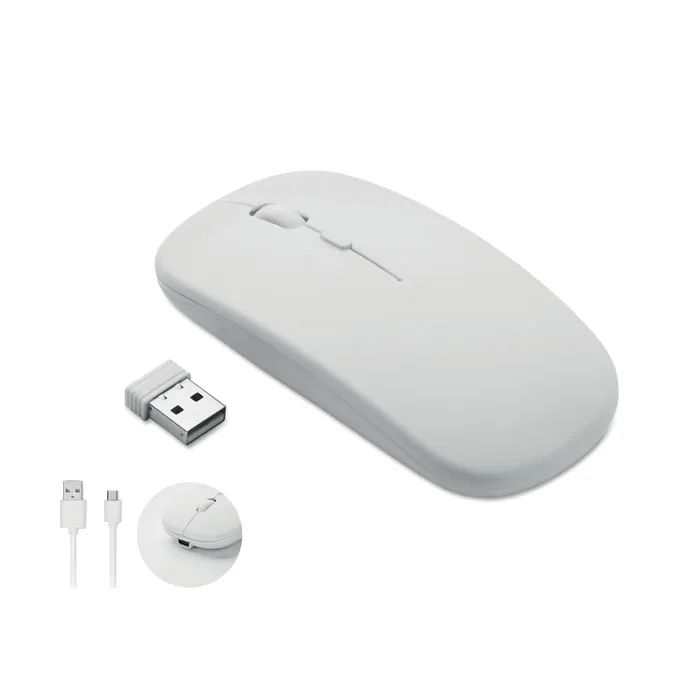 Rato ótico sem fios em ABS reciclado com bateria USB recarregável de 450 mAh.Rato ótico sem fios ABS