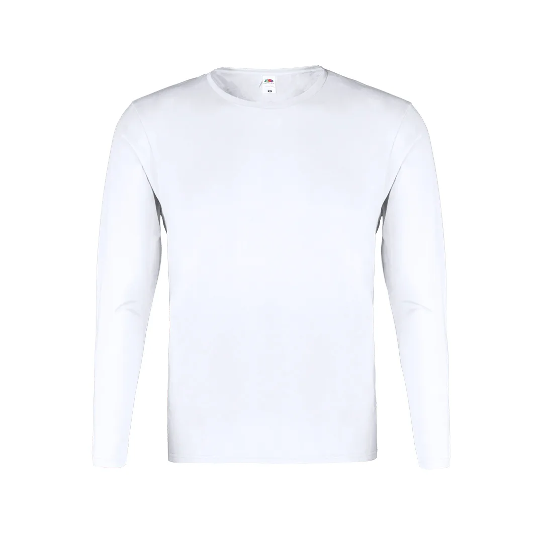 Ref: BEC2231MOT-shirt adulta branca icónica de manga comprida da Fruit Of The Loom. De manga comprida, feito de algodão Anel Fiado 100% penteado de 140g/m2. Toque suave e corte clássico, com um pescoço redondo nervurado 1x1. Etiqueta facilmente removível e disponível nos tamanhos S, M, L, XL, XXL.