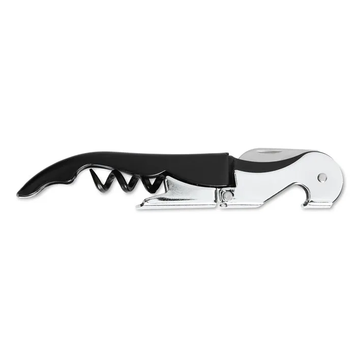 Saca-rolhas original em aço inoxidável, com duas posições de abertura.Saca-Rolhas