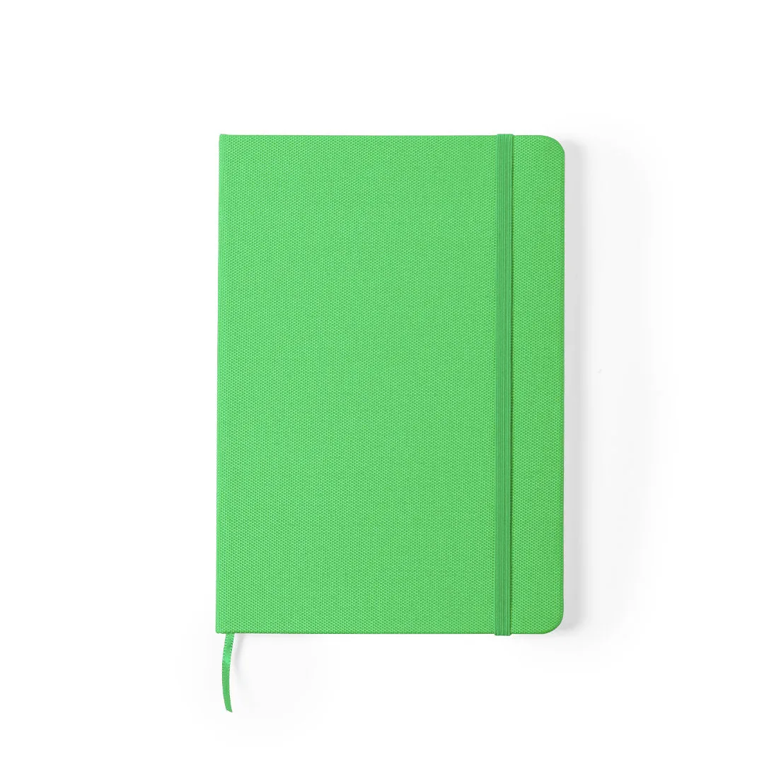 Bloco de notas de linha nature com capas rígidas em RPET 600D, elaborado a partir de plástico reciclado para asim incentivar a reutilização de resíduos plásticos e contribuir para a sustentabilidade do planeta.Disponível numa ampla gama de cores, inclui 80 folhas pautadas. Com fecho elástico e marca-páginas de tecido a condizer. Distintivo RPET na parte traseira.Poliéster 600D RPETCapa Rígida. 80 Folhas