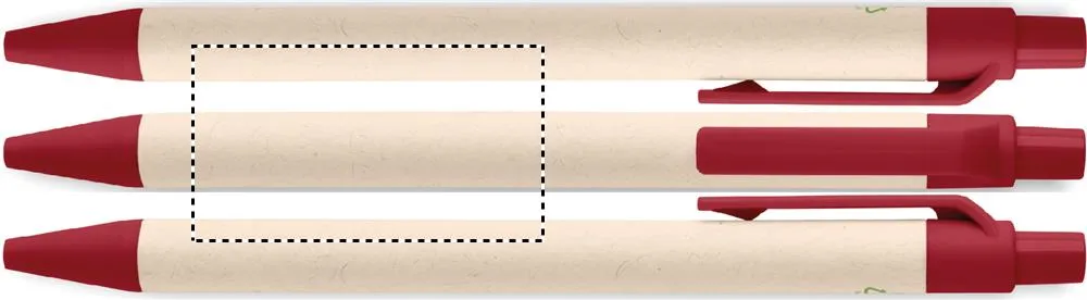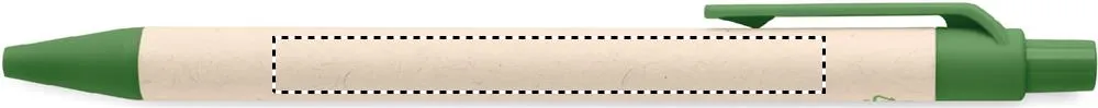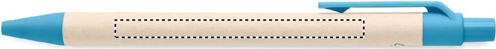 Caneta de botão de pressão com barril de cartão de leite reciclado e peças PLA (em milho 100% biodegradável). Tinta azul.Caneta em material reciclado