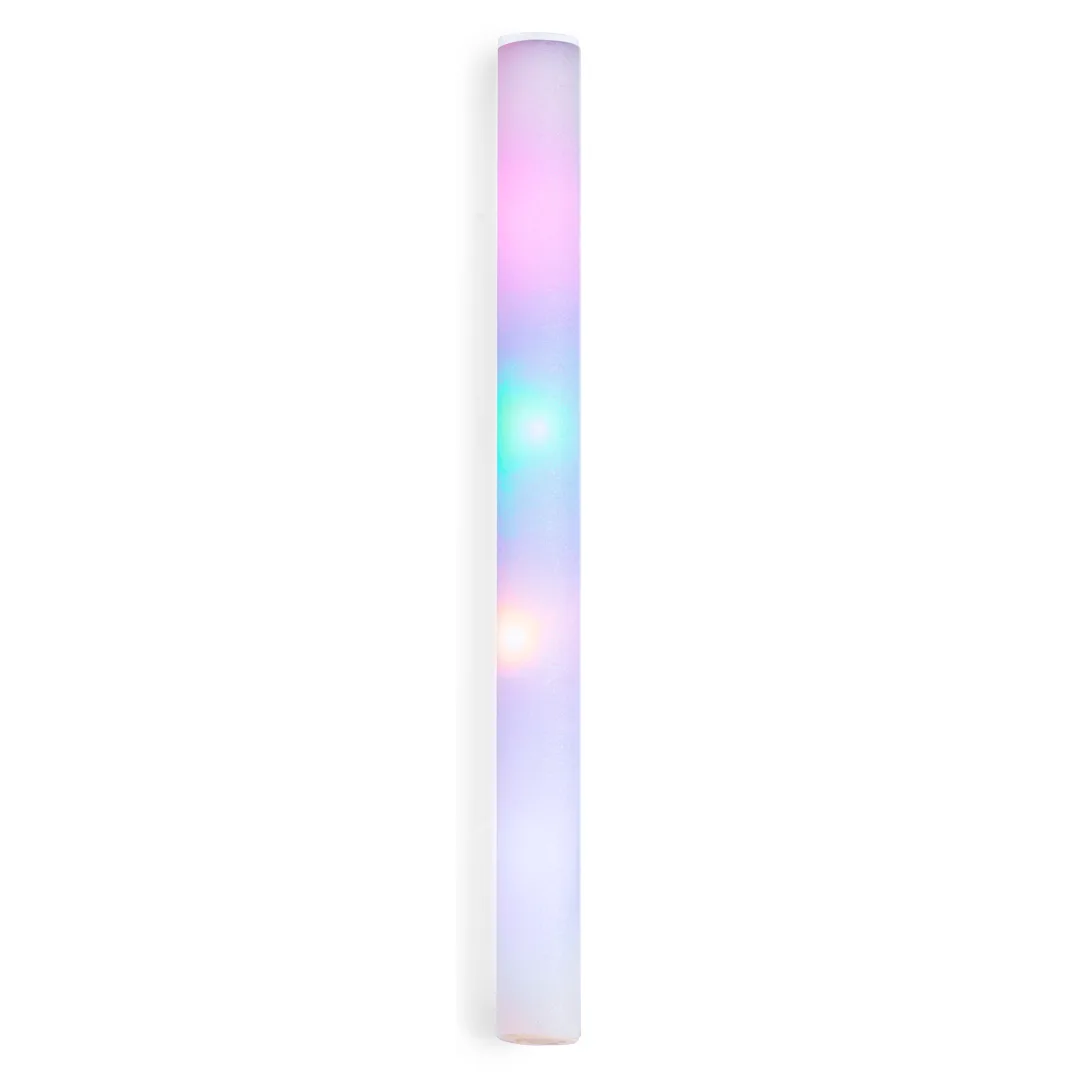 Ref: BEC23602MOOriginal bastão de luz, iluminado por brilhantes LEDs. Fabricado em espuma de tato suave e agradável, no interior é iluminado graças a quatro luzes LED de várias cores. Alimentado por pilhas de botão incluídas, fácil de acender a partir de um botão na base com três posições distintas (luz fixa, luz intermitente rápida ou lenta). Este acessório é ideal para destacar em qualquer evento. Apresentado individualmente numa caixa de design kraft.