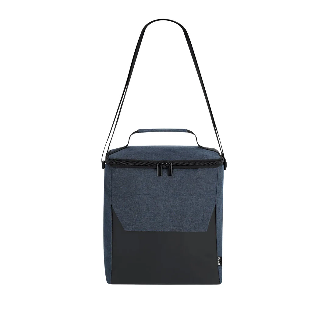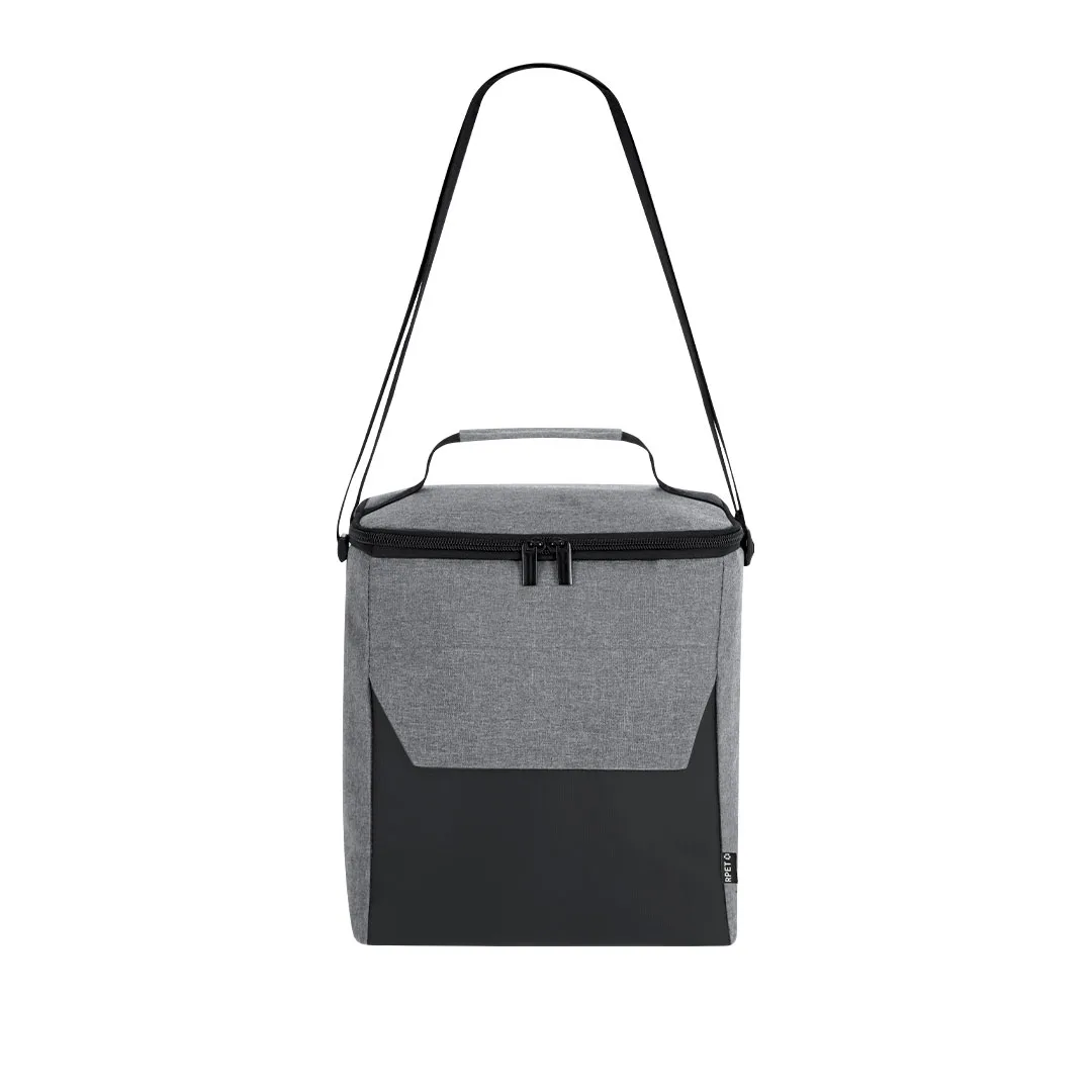Cooler fabricado em resistente RPET 600D em combinação com PU. Inclui compartimento principal, com fechamento de zíper e puxador metálico duplo, com interior isotérmico em PEVA. Bolso frontal com fechamento de zíper. Inclui alça de ombro ajustável e alça de mão acolchoada na parte superior. Etiqueta exterior com distintivo RPET.O material RPET é elaborado a partir de plástico reciclado, para promover a reutilização de resíduos plásticos e ajudar a sustentabilidade do planeta.Poliéster 600D RPET/ PU/ PEVA