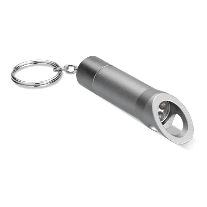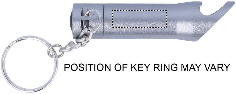 Lanterna LED com porta chaves, em metal com descapsulador. Pilha incluída.Lanterna porta chaves em metal