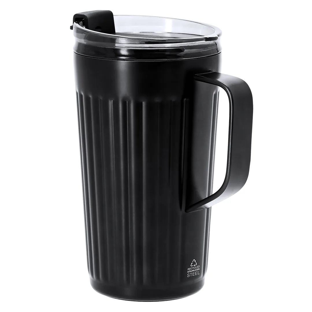 Caneca térmica feita de aço inoxidável reciclado com parede dupla e capacidade de 350 ml. Exterior com acabamento biselado em cor metálica fosca. Inclui uma tampa transparente de encaixe fácil, com abertura flip. Além disso, possui um furo para o canudo com tampa de silicone, livre de BPA. Base de silicone antiderrapante e logotipo de aço inoxidável reciclado.O aço é um dos materiais mais requisitados e pode ser encontrado praticamente em todos os lugares, desde produtos cotidianos até grandes construções. Com inúmeras propriedades, incluindo durabilidade e alto nível de reutilização, é uma alternativa muito valorizada para soluções sustentáveis. Adequadamente tratado, pode-se obter novos recursos de uso infinito.Aço Inox Reciclado350 ml
