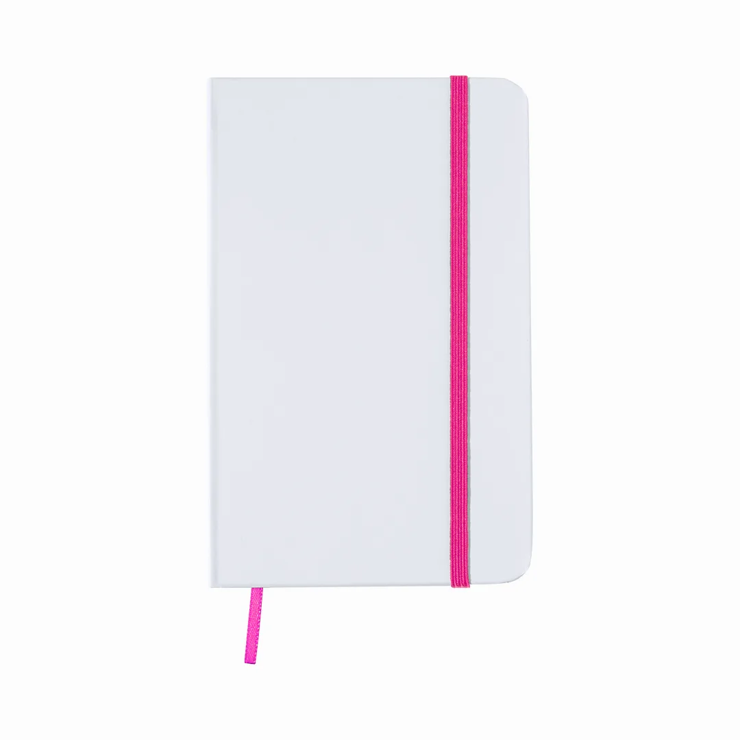 Ref: BEC2434MONota com tampas de toque suave em papelão resistente com um elegante acabamento branco. Especialmente projetado para impressão digital em capas, incluindo 80 folhas em branco com faixa elástica e marcador de tecido colorido correspondente.