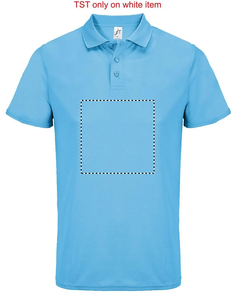 SOL'S PITCHER UNISEX POLO, pólo desportivo, 100% poliéster reciclado, mangas curtas, corte cosido, carcela reforçada com 3 botões tom sobre tom, fita para o pescoço, gola canelada, adequado para sublimação. Para saber os tamanhos a combinar, consulte a tabela de tamanhos na secção de documentação do produto.PITCHER POLO UNISEX