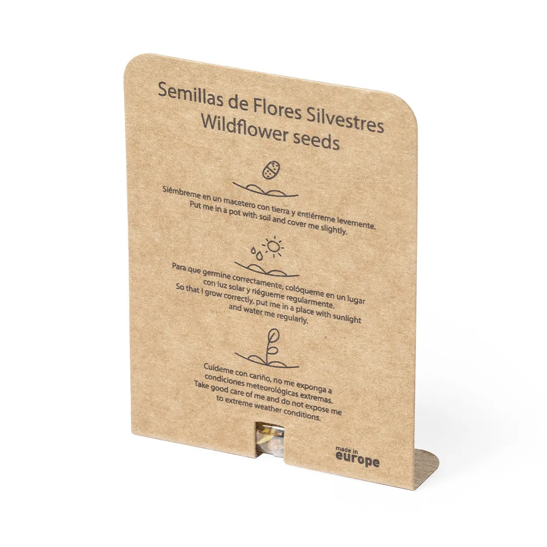 Cápsula de sementes, apresentada numa caixa de cartão reciclado com instruções de plantação e distintivo Made in Europe. Flores silvestres em cores sortidas.Cartão RecicladoFlores silvestres