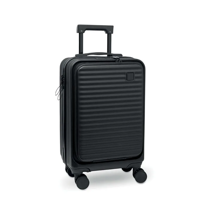 Trolley rígido de 20“ em ABS. 1 compartimento principal com compartimento interior. Compartimento frontal adicional com fecho para documentos e compartimento acolchoado para portátil de 15”. Fecho segurança (TSA). Medidas: 33,5 x 23,5 x 56,5 cm, incluindo as 4 rodasTrolley rígido de 20" em ABS