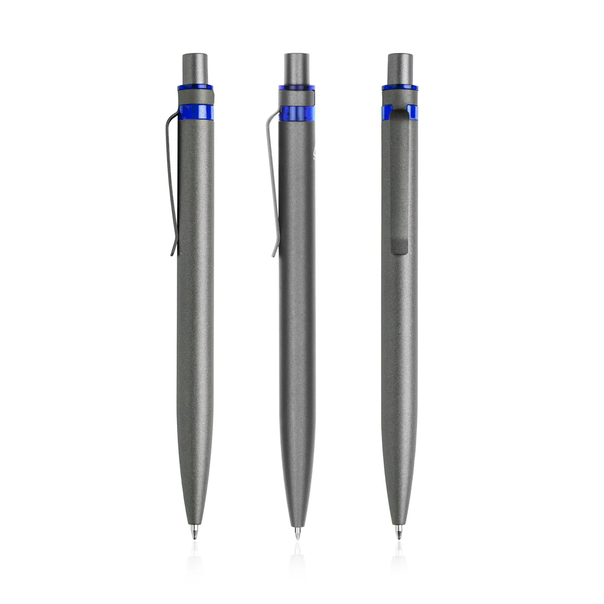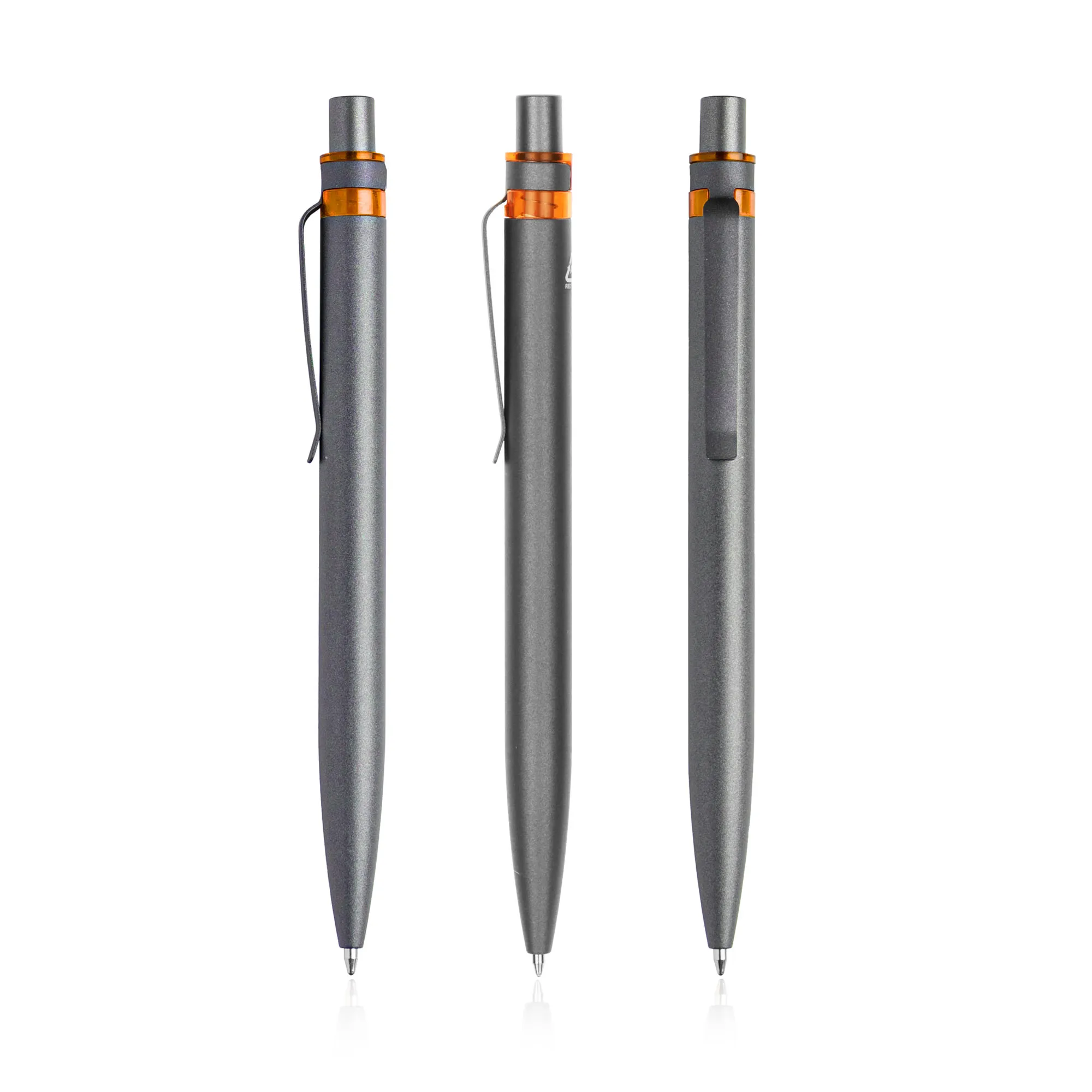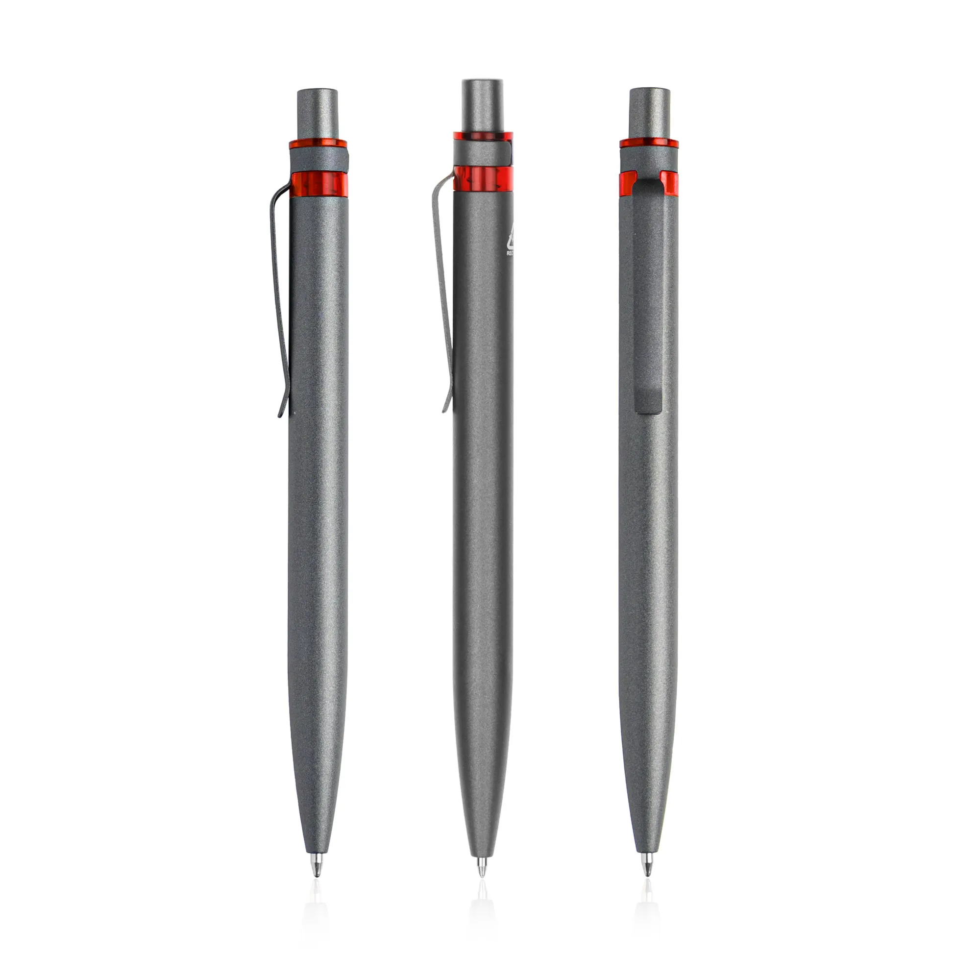 Esferográfica em alumínio reciclado, detalhe colorido. Feita em alumínio reciclado de desperdício e em fim de vida útil, utilizando processos de derretimento e aproveitamento. Ao comprar esta esferográfica, está a ajudar a reduzir as libertações de carbono e a reduzir o lixo derivado da não reutilização.Esferográfica em alumínio reciclado, detalhe colorido