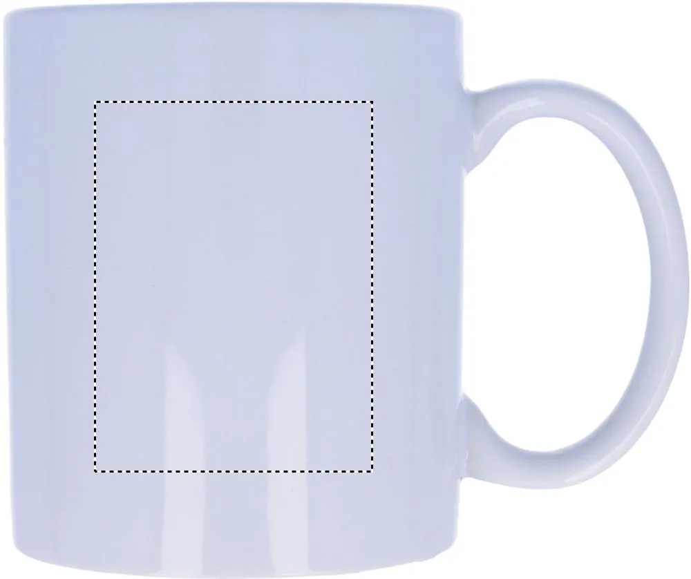 Caneca de cerâmica cilíndrica clássica de 300 ml. Embalagem individual em caixa de papelão ondulado. Para impressão em cores, entre em contato conosco para obter preços.Caneca cerâmica clássica 300 ml