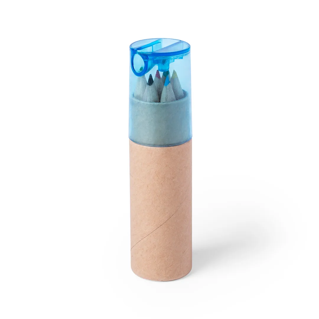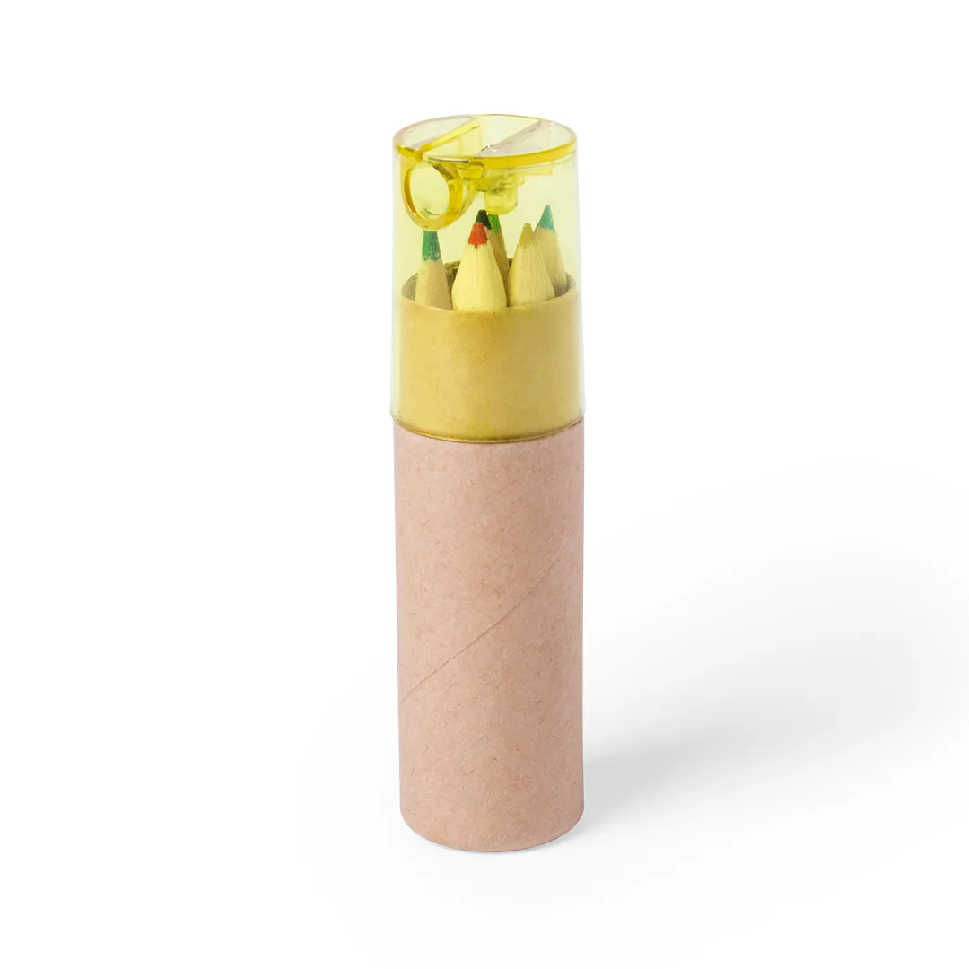 Conjunto de 7 peças em estojo com corpo em cartão natural e capuz transparente em várias cores. Inclui 6 lápis de madeira com um corpo hexagonal com acabamento natural e um apontador integrado na tampa.Cartão Reciclado7 Peças