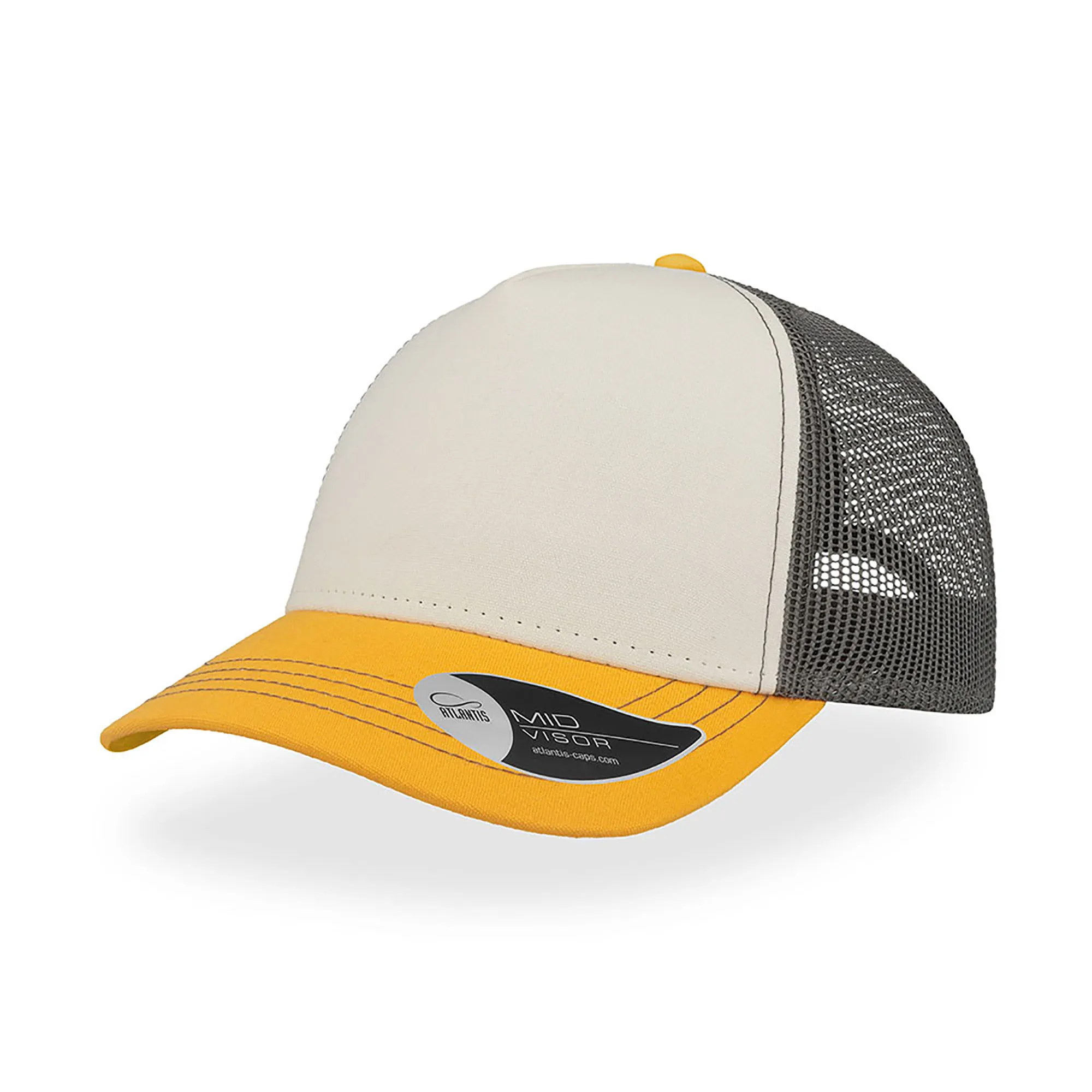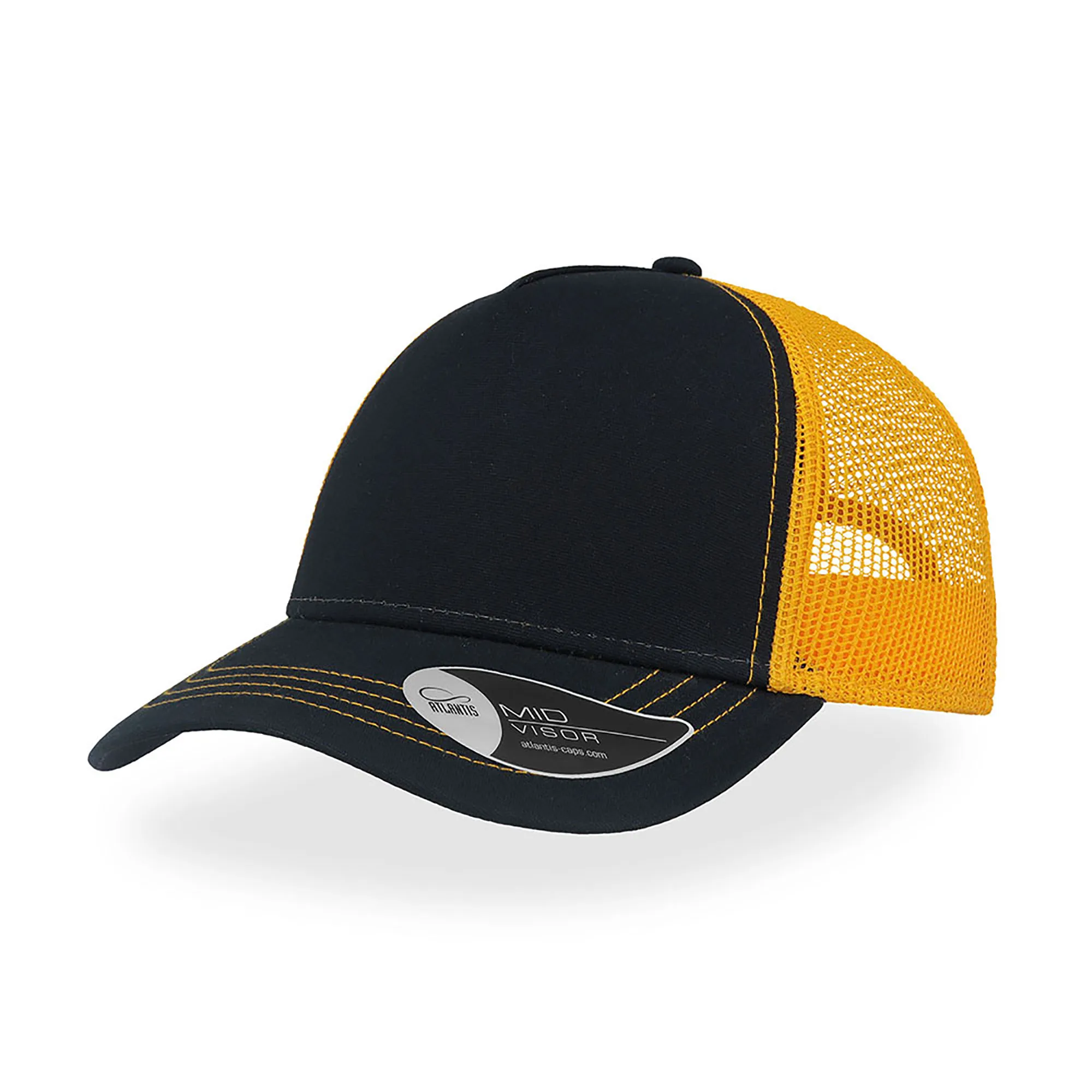 Ideal para momentos 100% divertidos. Graças às cores vivas, à viseira curta e ao seu estilo glamoroso, o material de lona torna-o perfeito para passeios à noite. Tem 4 costuras a contrastar na pala, 5 painéis, visor semi-curvo, lateral e traseira em rede, fecho em PVC atrás. Etiqueta removível. Frente 100% Algodão, traseira 100% Poliéster.Boné Rapper Canvas, 100% Algodão Canvas