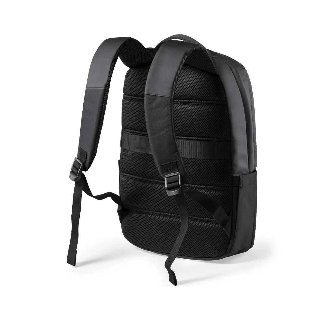 Ref: BEC2637MOMochila Antonio Miró de qualidade premium em resistente poliéster 600D de design sóbrio em preto. Com fecho de correr, bolso frontal e pega metálica reforçada. Acolchoado ergonómico nas costas e alças de ombro, inclui compartimento interior acolchoado para portátil de até 15 polegadas e tablet de até 10polegadas. Compartimentos interiores para canetas e smartphone. Com o logótipo da marca na frente.