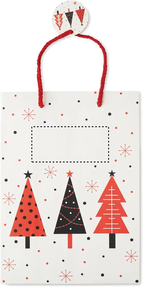 Saco de papel de presente médio de Natal (30% reciclado) com etiqueta incluída. 150 gr/m². FSC®-certified | FSC MIX, W5.3, FSC-C213206Saco de papel de oferta médio