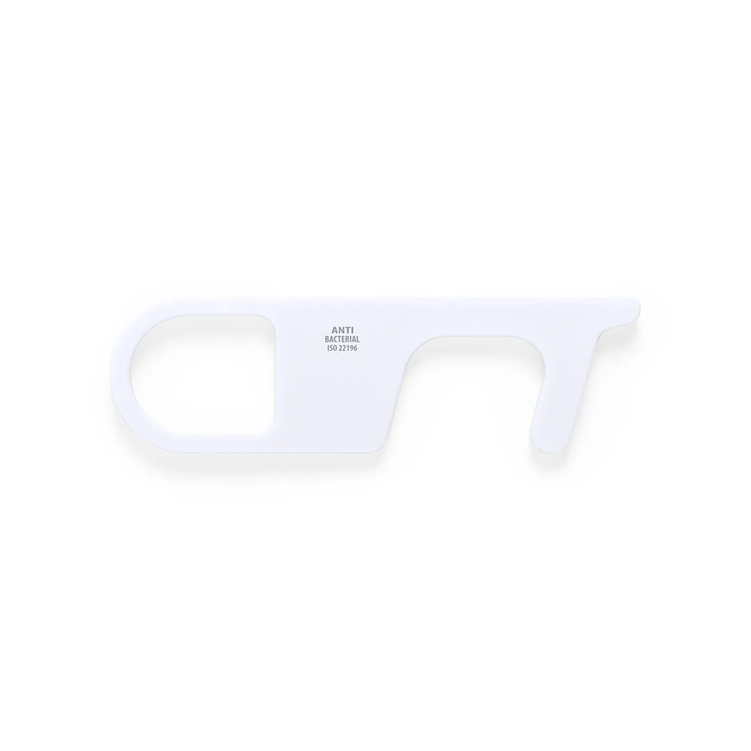 Porta-chaves higiénico anti-bacteriano e anti-contato, fabricado em resistente ABS de acabamento sólido. Especialmente desenhado para evitar tocar com as mãos superfícies de uso comum (maçanetas de portas, interruptores, torneiras de uso público, caixas multibanco...). Com cómodo recorte para o dedo a apresentado em bolsa individual. Recomendado para impressão em tampografia.Os produtos com tratamentos anti-bacterianos são capazes de reduzir drásticamente as cargas bacterianas presentes nas superfícies dos materiais, graças à incorporação de agentes microbianos permanentes estáticos, com alta efetividade para inibir e prevenir a contaminação bacteriana.Artigo de acordo com a ISO 22196, que determina a atividade anti-bacteriana em materiais plásticos e superfícies não porosas, o que permite conhecer a efetividade de inibição microbiana que têm os aditivos sobre os objetos tratados mediante uma avaliação quantitativa.