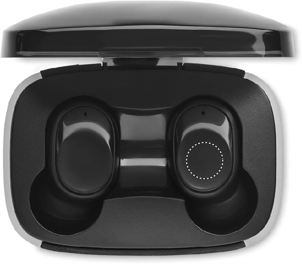 Conjunto de 2 auriculares True Wireless Stereo (TWS) 5.1 com microfone e bateria de 25 mAh incorporada. Tempo de reprodução de cerca de 3 horas. Emparelhamento automático. Inclui um cabo de carregamento micro USB e uma estação de carregamento de 200 mAh.Fones TWS com caixa de carga