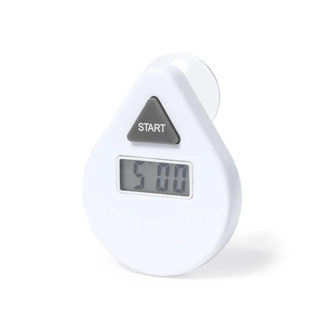 Temporizador fabricado em resistente ABS de acabamento branco e com fixação por ventosa. Ecrã LCD de fácil leitura, com botão de controlo de contagem decrescente (5 minutos). Alimentação com pilha (de botão incluída). Apresentado em caixa individual de design kraft, com manual de instruções em espanhol e inglês.Pilha Botão Incluída