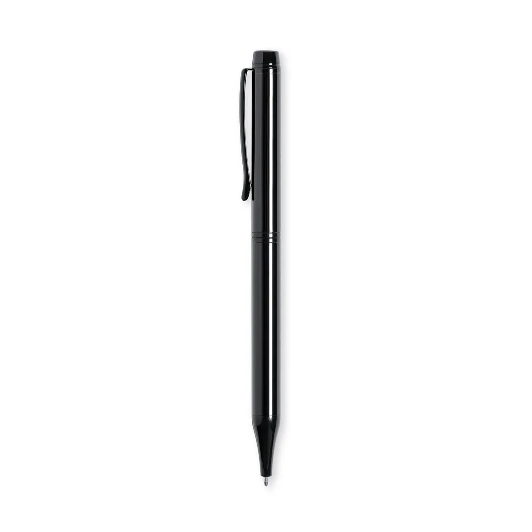 Esferográfica de Antonio Miró fabricada em metal de acabamento brilhante, com logotipo da marca no corpo e disponível numa variada gama de cores. Com mecanismo giratório e em tinta azul. Apresentada numa elegante e resistente caixa individual preta com logotipo Antonio Miró e estojo a condizer.Metal