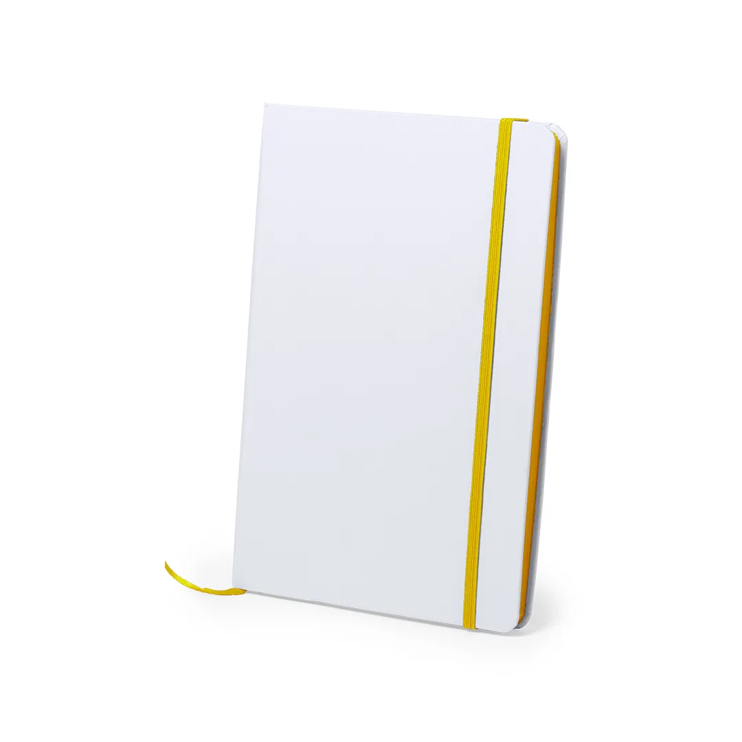 Ref: BEC2765MOBloco de notas com capas rígidas de toque suave e acabamento em branco. Com 100 folhas lisas com lombada em cores divertidas, fecho elástico e marcadores de tecido, a condizer