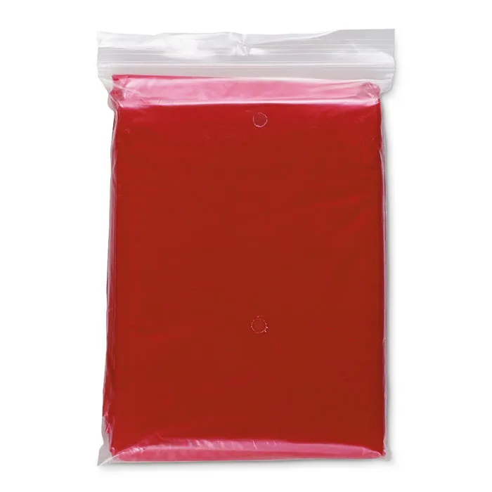 Impermeável de plástico dobrável com capuz. Embalado em polybag transparente.Impermeável em polybag