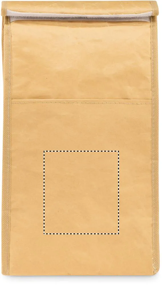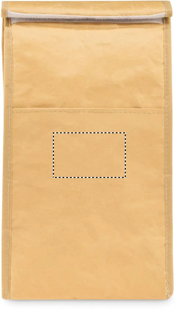 Saco de almoço térmico em tecido de papel reciclado com bolso frontal. Material de isolamento: Camada de espuma PE. Capacidade 3L.Saco em paper woven