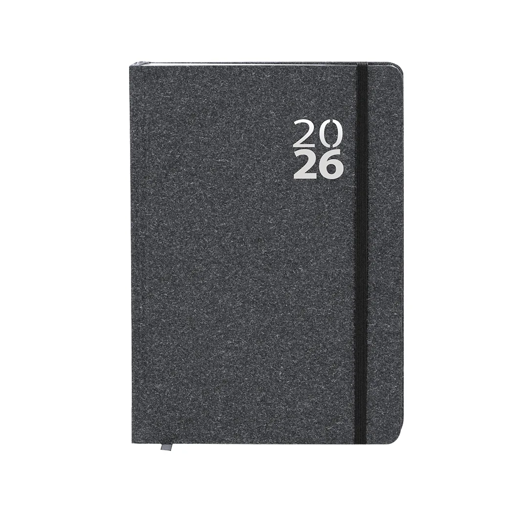 Diário tamanho A5 em papelão reciclado, com capas duras e fecho de banda elástica correspondente. Inclui uma caixa de apresentação em kraft e um logotipo ECO.Design de página por dia, com uma área para anotações e marcador de tecido. Em 2 idiomas: inglês e espanhol.O papelão reciclado provém da reutilização de excedentes de fabricação e da reciclagem de papel ao final de sua vida útil, tornando-o uma tela ecológica e sustentável.Cartão RecicladoPágina Dia. Caixa de Apresentação Incluída