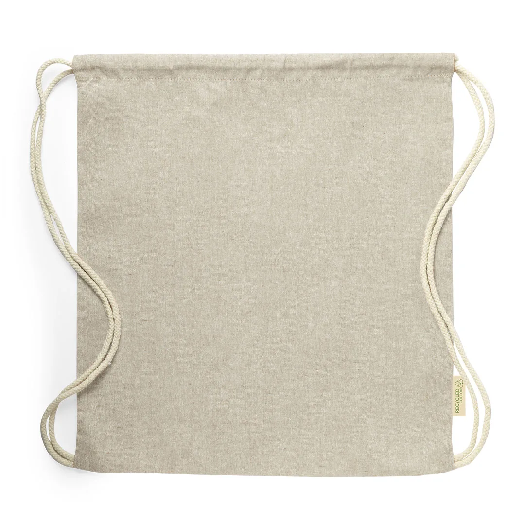 Mochila de cordas da linha nature em material algodão reciclado de 120 g/m2. Fecho de cordões em algodão, com etiqueta lateral e disponível numa variada gama de cores nature. Resistência até 9kg de peso.100% Algodão Reciclado 120 g/ m2
