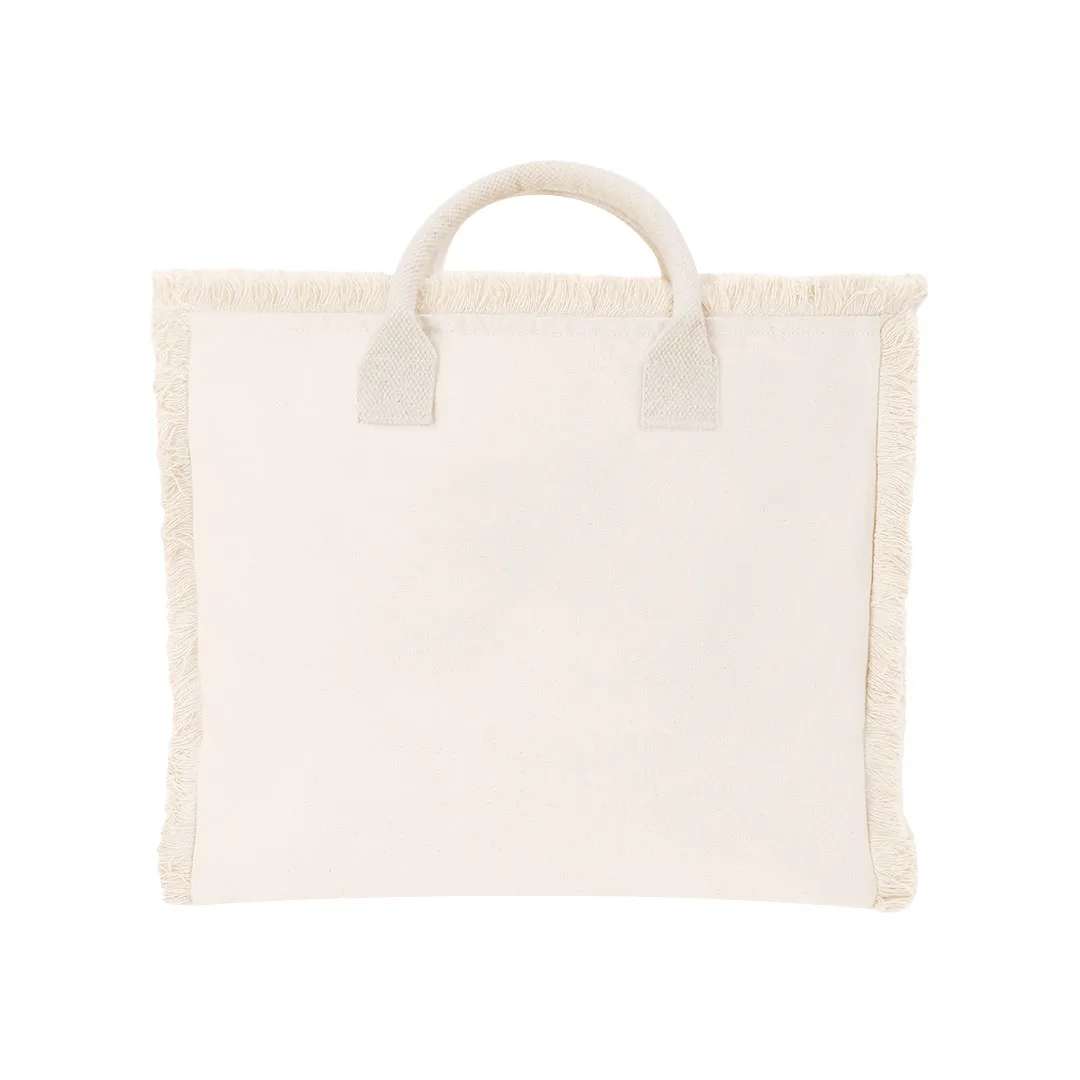 Bolsa com estilo de franjas confeccionada principalmente em algodão de 360 g/m². De design prático e moderno, incorpora alças curtas reforçadas. Inclui fechamento de zíper para maior segurança e bolso interno com zíper.Algodão 360 g/ m2