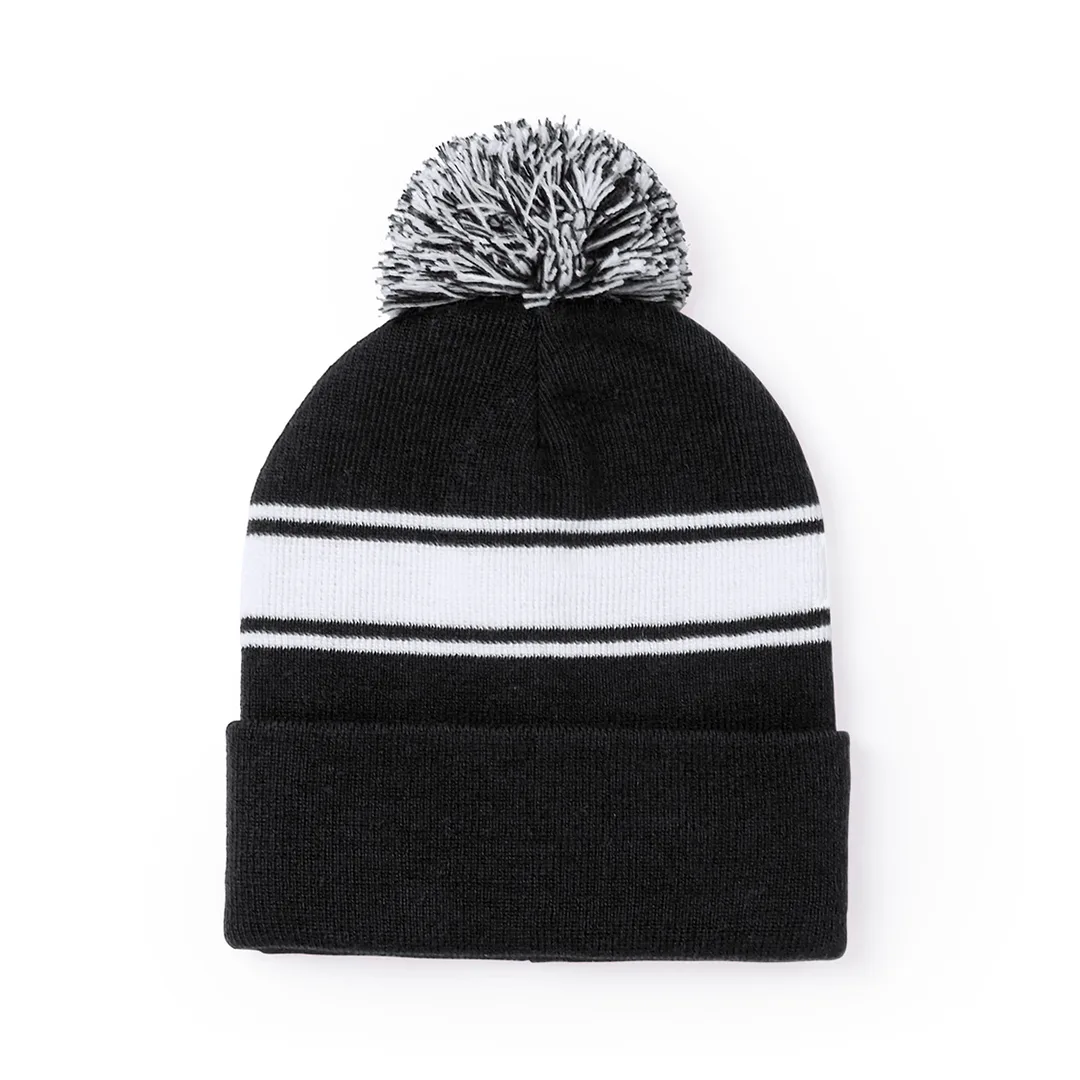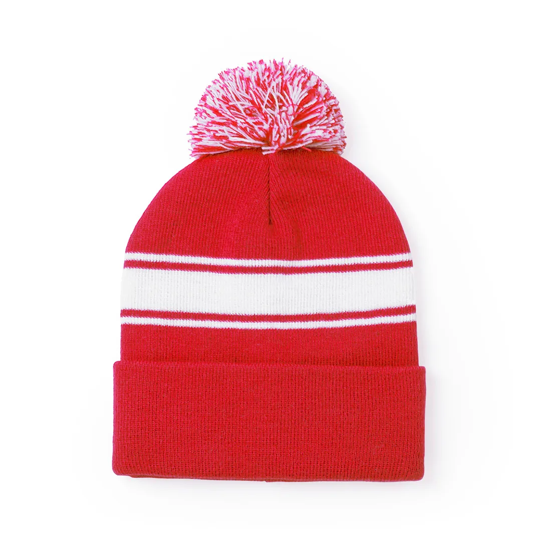 Ref: BEC2955MOBapa suave e quente feito de material acrílico, em uma ampla gama de cores. Design original, com faixa frontal branca e pom pom de dois tons na cor correspondente.