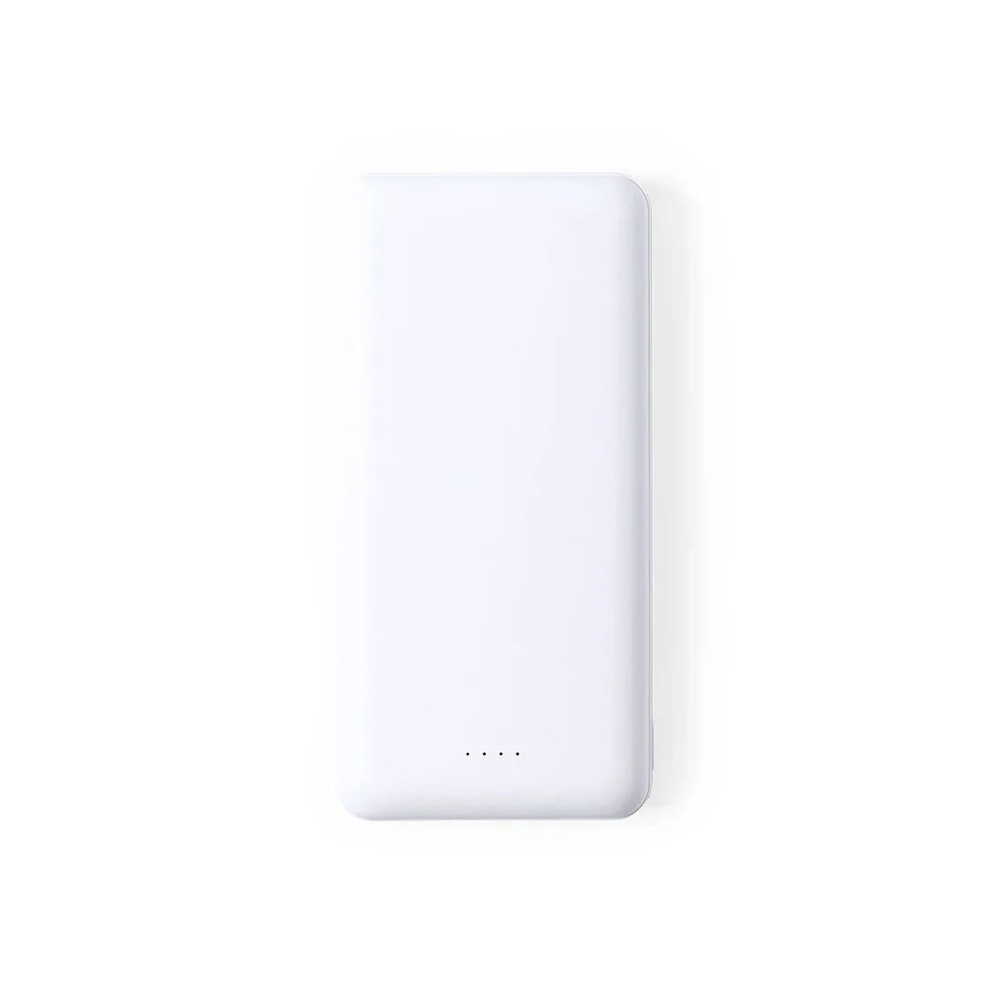 Bateria auxiliar externa de grande capacidade de carga -20.000 mAh-. Conexão Tipo-C de entrada/saída de corrente e saída dupla USB. Com capacidade de carregamento simultâneo de até 3 dispositivos. Ledes indicadores de estado de carga, design curvo e ampla superfície de impressão. Apresentada numa caixa de design atrativo.As capacidades apresentadas em todas as nossas baterias auxiliares externas são reais, incorporando todas elas baterias de grau A e não recicladas, com uma vida útil de pelo menos 500 ciclos de carga e de acordo com os regulamentos CE. Além disso, são fabricadas de acordo com os padrões RoHS e em conformidade com os seguintes requisitos de segurança: Sistema de proteção contra sobrecarga do powerbank. Sistema de proteção contra descarga completa que proporciona maior durabilidade do powerbank. Sistema de bloqueio para evitar curto-circuitos. Sistema de transferência de carga constante, de acordo com a capacidade do dispositivo de destino.20000 mAh. 2 Saídas USB e 1 Tipo C. Entrada Tipo C. Cabo Não Incluído