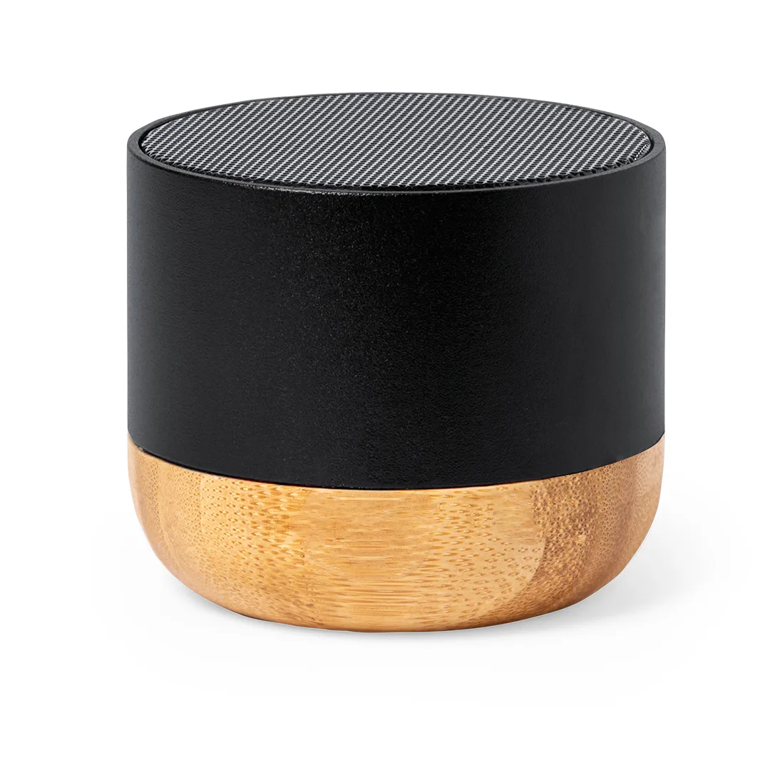 Altifalante ecológico fabricado numa combinação de revestimento de alumínio reciclado e base de bambu. Com ligação Bluetooth® e potência de 3 W. Bateria de lítio de 300mAh e logótipo Recycled Aluminium. Apresentado numa caixa individual de design kraft, com manual de instruções disponível em espanhol e inglês.O Alumínio Reciclado é um material com possibilidades de reciclagem quase infinitas, sem perder as suas propriedades originais e consumindo menos energia no processo.Certificação GRS (Global Recycled Standard/Norma Global de Reciclagem), que garante a origem reciclada do material utilizado no fabrico do produto.Alumínio Reciclado/ BambuConexão Bluetooth. Potência Sonora 3W. Bateria 300 mAh