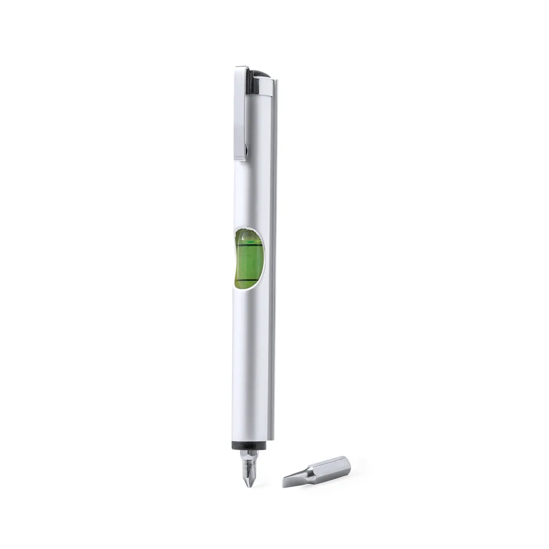 Prática multiferramenta em alumínio, com medidor de nível integrado na caixa e duas cabeças de chave de fenda (plana e philips) no interior. Com clip de metal cromado e apresentado em caixa de design kraft.Alumínio2 Acessórios. 3 Funções
