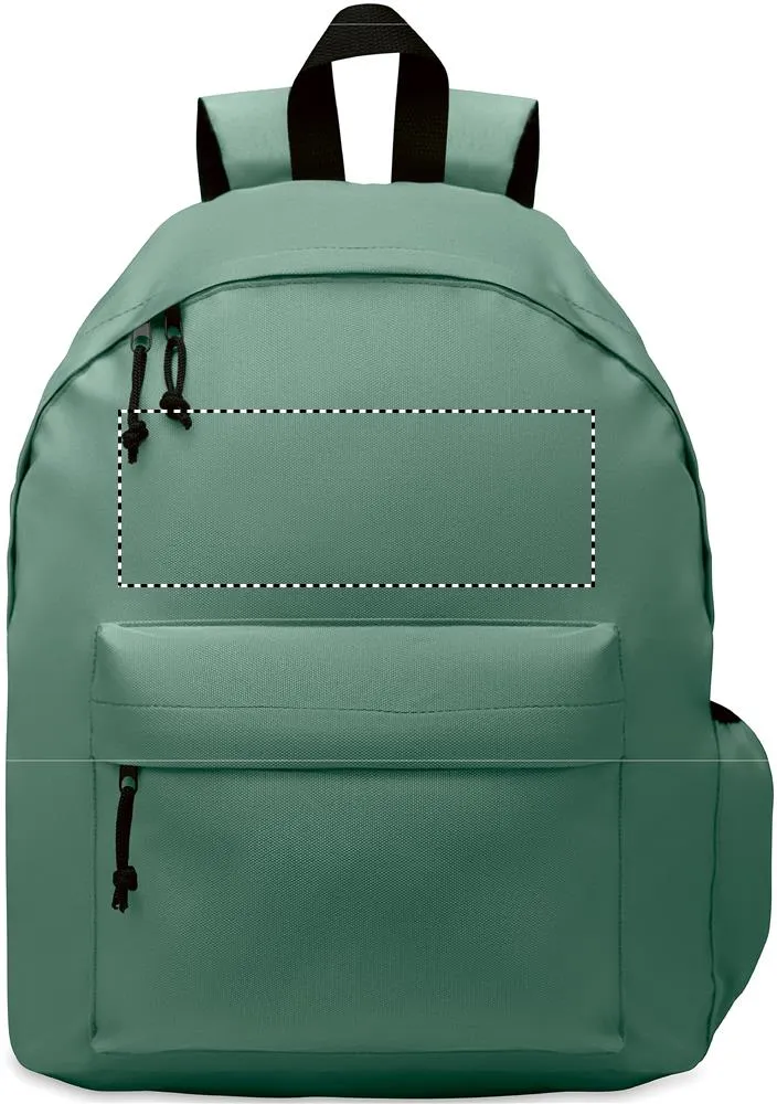 Mochila em poliéster RPET 600D com bolso exterior com fecho de correr. Costas acolchoadas e compartimento lateral para garrafas.Mochila poliéster RPET 600D