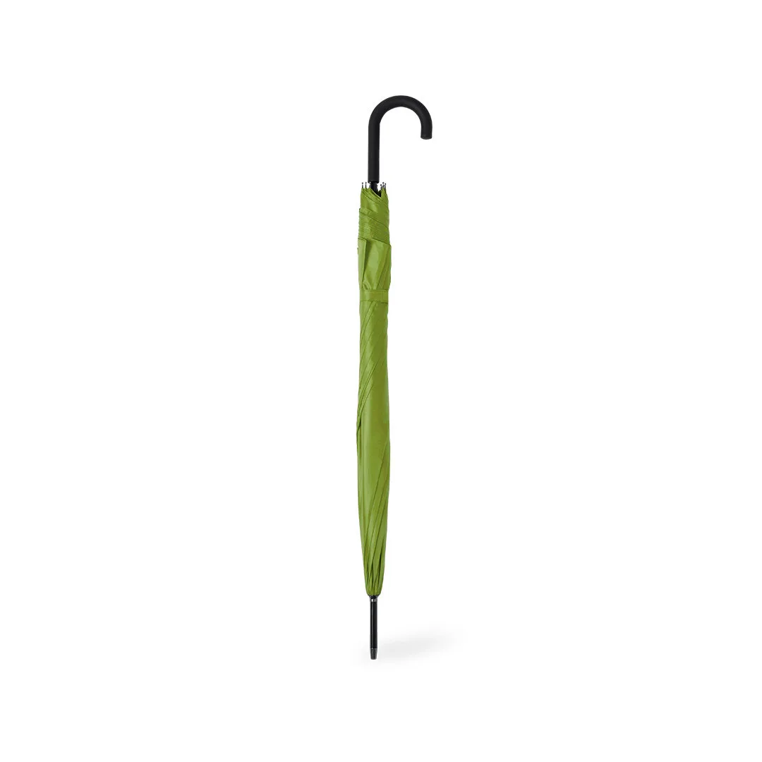 Guarda-chuva de 8 painéis tamanho XL -130 cm diâmetro-, fabricado em resistente material pongee 190T. De abertura automática e com mecanismo antivento. Varetas de fibra de cor preta, com pega curvada e fecho de velcro. Disponível numa extensa gama de cores.Pongee 190T. Varas Fibra de Vidro30". Automático. Sistema Anti-Vento