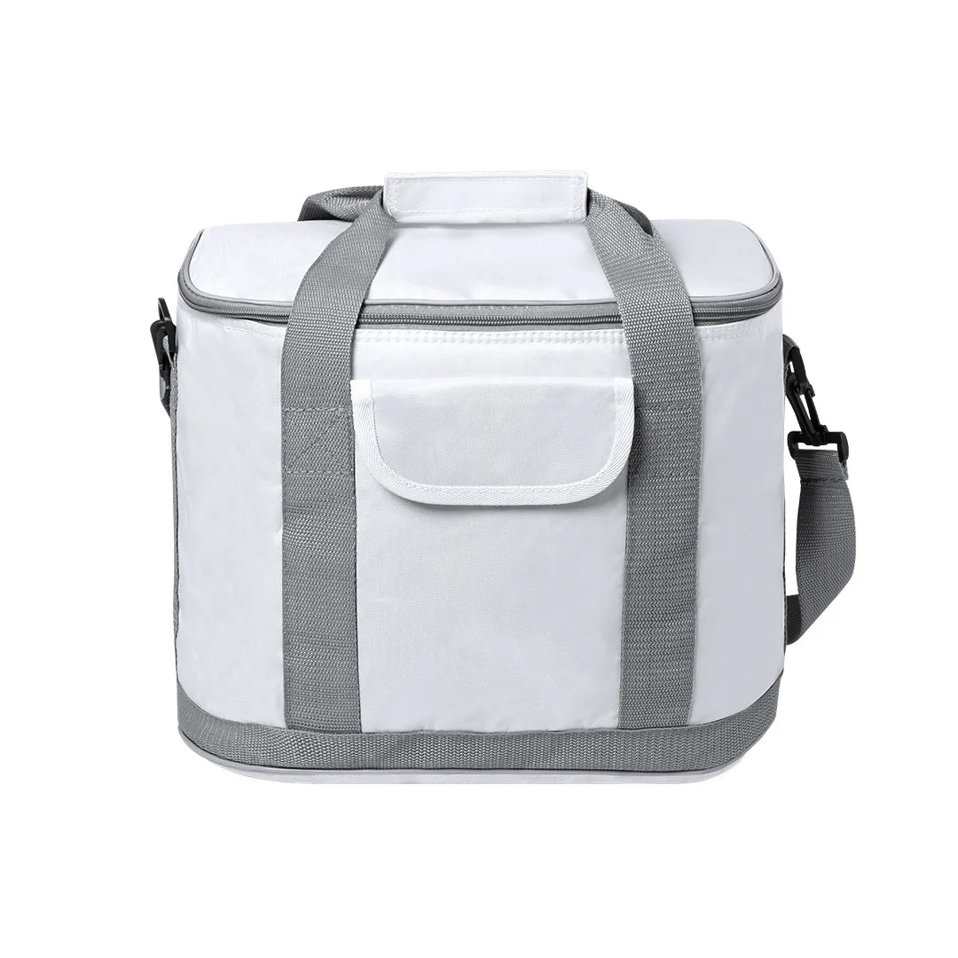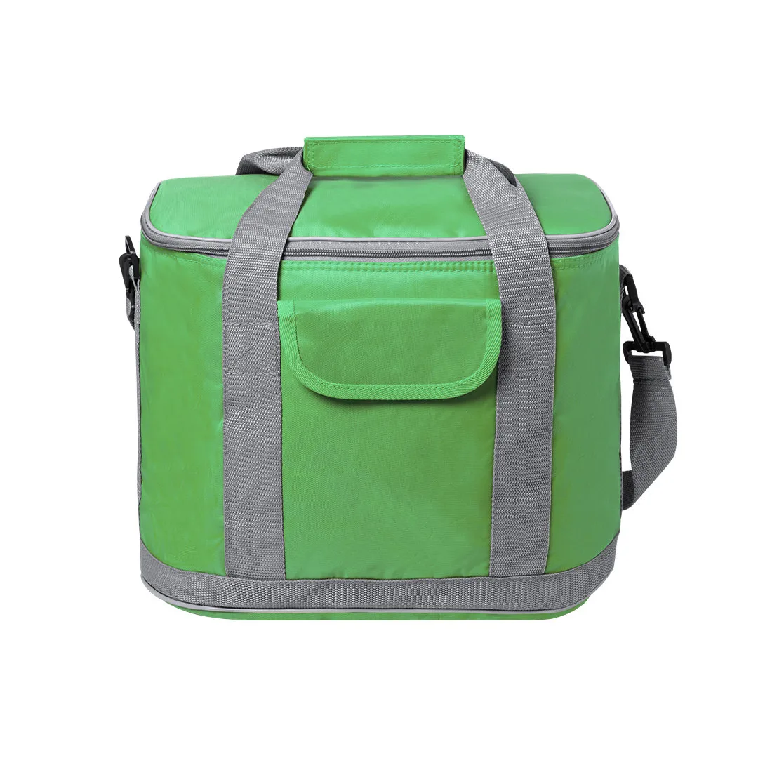 Bolsa refrigeradora todo o terreno em resistente poliéster 420D, com compartimento principal com fecho de correr e bolso frontal com fecho de velcro. Interior isotérmico em PEVA, com fita de ombro ajustável e mosquetão de fixação. Resistência até 8kg de peso.Poliéster 420D/ PEVA