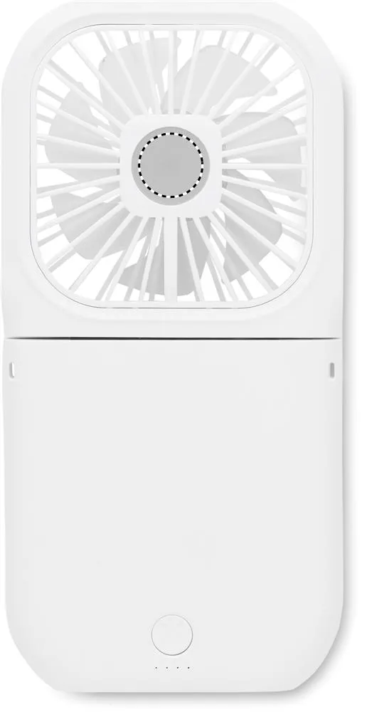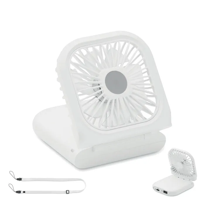 Ventoinha portátil dobrável com alça de pescoço ajustável. 3 velocidades. Também pode ser utilizada como ventoinha de secretária quando dobrada. Banco de potência com bateria recarregável de 3000 mAh. Entrada/Saída: Tipo C e saída tipo A.Ventoinha portátil dobrável