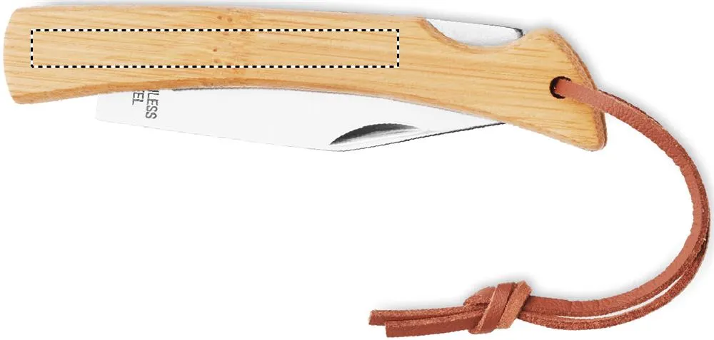 Faca dobrável em aço inoxidável 2CR13 e cabo de bambu com cabo em PU. O bambu é um material natural, a cor do item, o tamanho e a impressão podem variar.Faca dobrável em bambu
