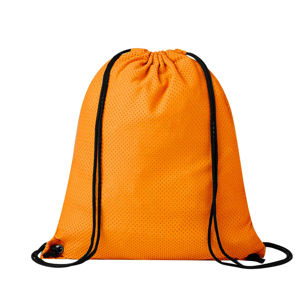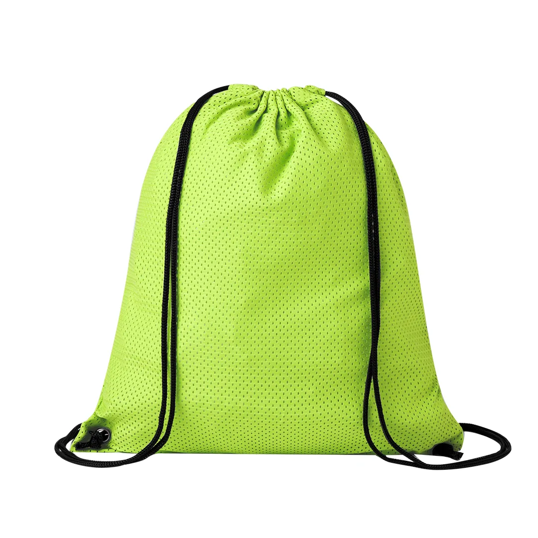 Saco mochila em poliéster macio. Possui cordões de fecho automático e argolas metálicas de reforço. Disponível numa gama de cores (cor branca especialmente fabricada para impressão em sublimação).Poliéster